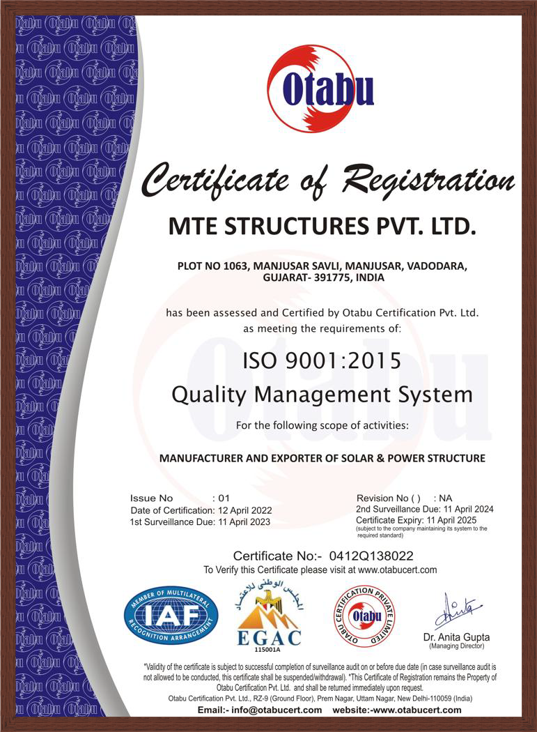 At MTE Structures Limited., we are dedicated to revolutionizing the renewable energy sector with precision-engineered solar mounting solutions. From our humble beginnings, we have grown into a trusted name, delivering innovative structures for commercial, utility-scale, and customized projects.